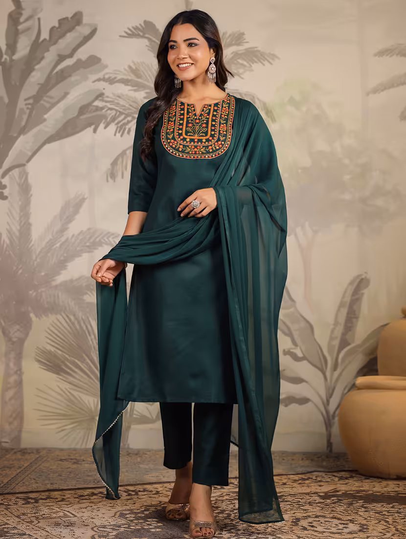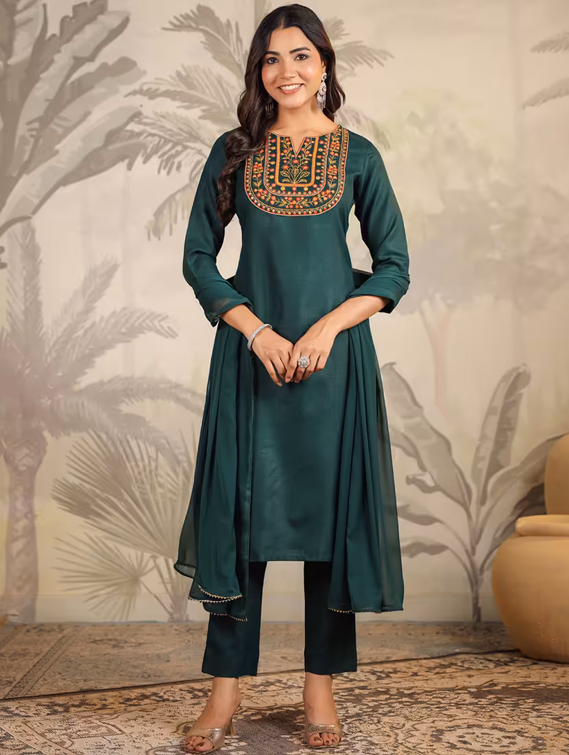 Step into effortless style with this beautifully tailored kurta set, featuring a sophisticated three-quarter sleeve design. Paired with matching pants and a flowing dupatta, this ensemble is perfect for festive occasions, family gatherings, or casual outings. Crafted with attention to detail, it offers comfort and elegance in every step.